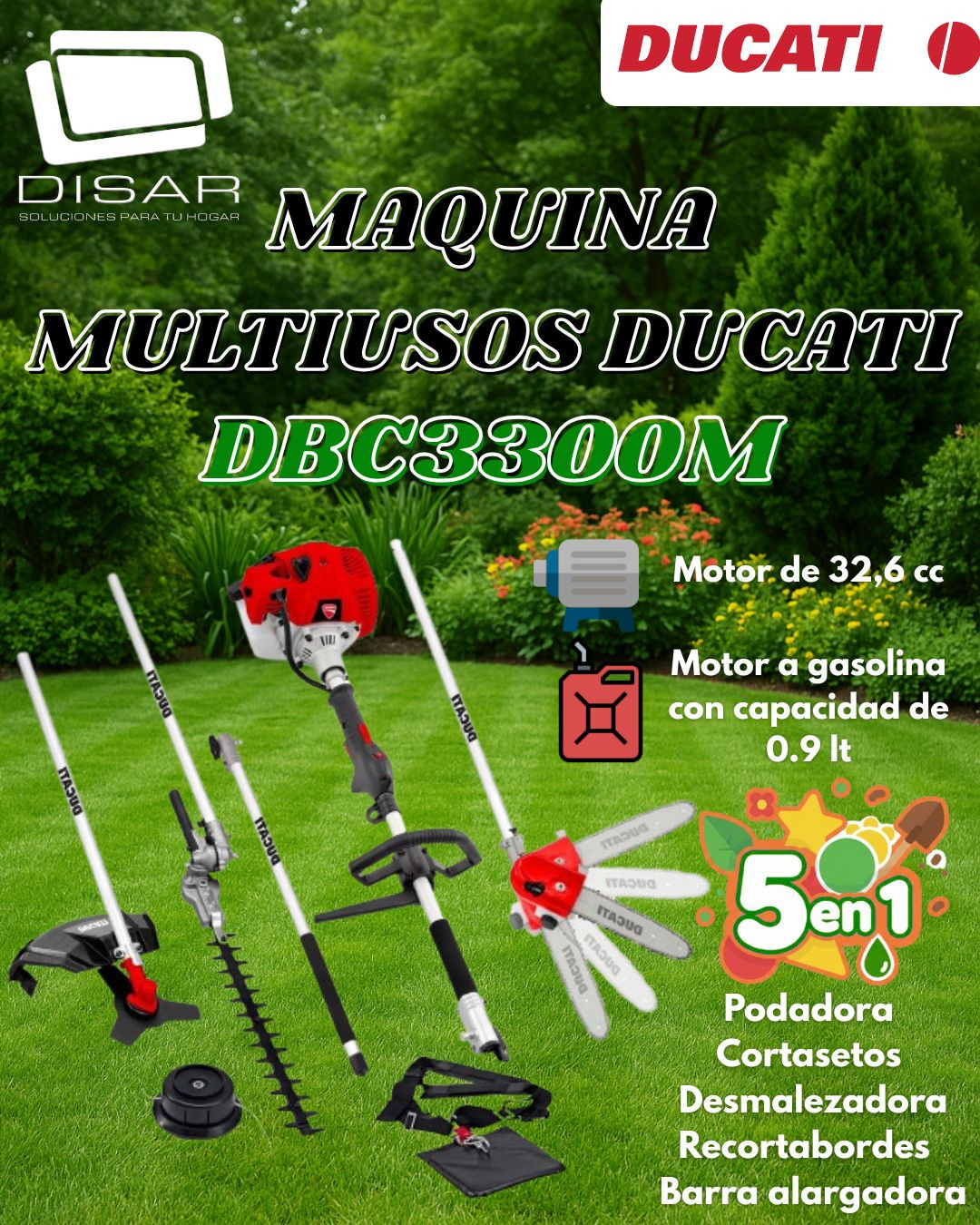 Es una máquina 5 en 1: Desmalezadora,